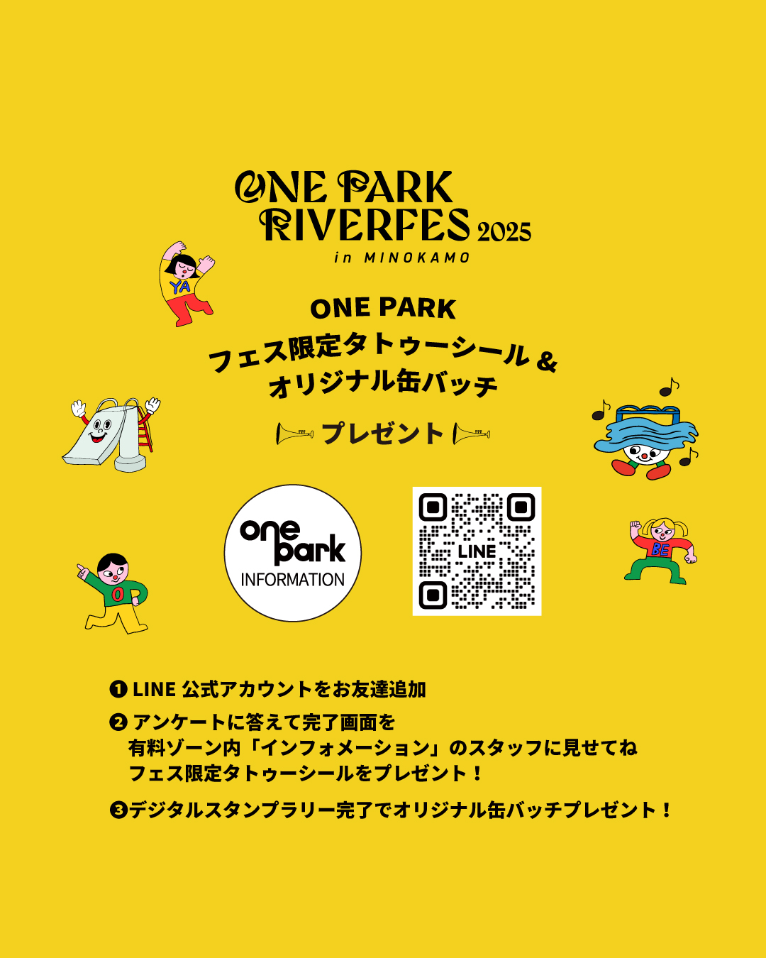❷ アンケートに答えて完了画面を 有料ゾーン内「インフォメーション」のスタッフに見せてね。 フェス限定タトゥーシールをプレゼント!